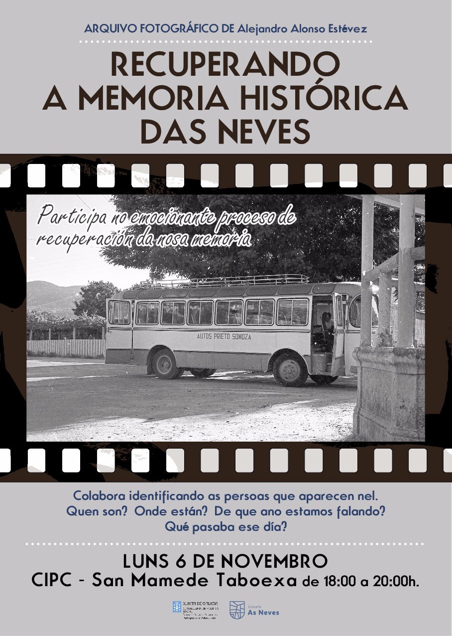 O Concello das Neves vén de iniciar un ambicioso proxecto de recuperación da memoria local, logo de recibir o legado do fotógrafo Alejandro Alonso Estévez composto por máis de 3.000 negativos, en 35 mm, que recolle imaxes de habitantes do concello e da contorna dende os anos 60 do pasado século XX.