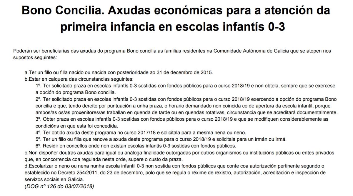 O Bono Concilia de axudas a atención a infancia de 0 a 3 anos